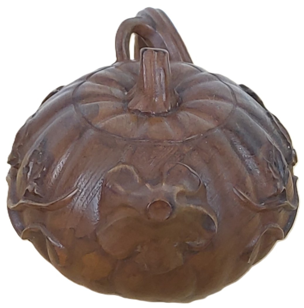 A Chinese Boxwood Carved Pumpkin Teapot Sculpture