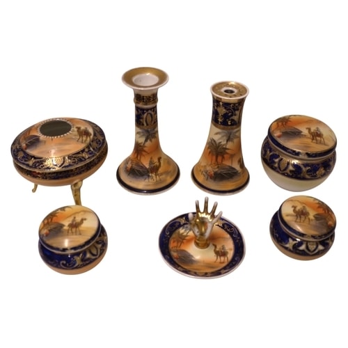A Collection of Seven Noritake Porcelain Desert Scene Items