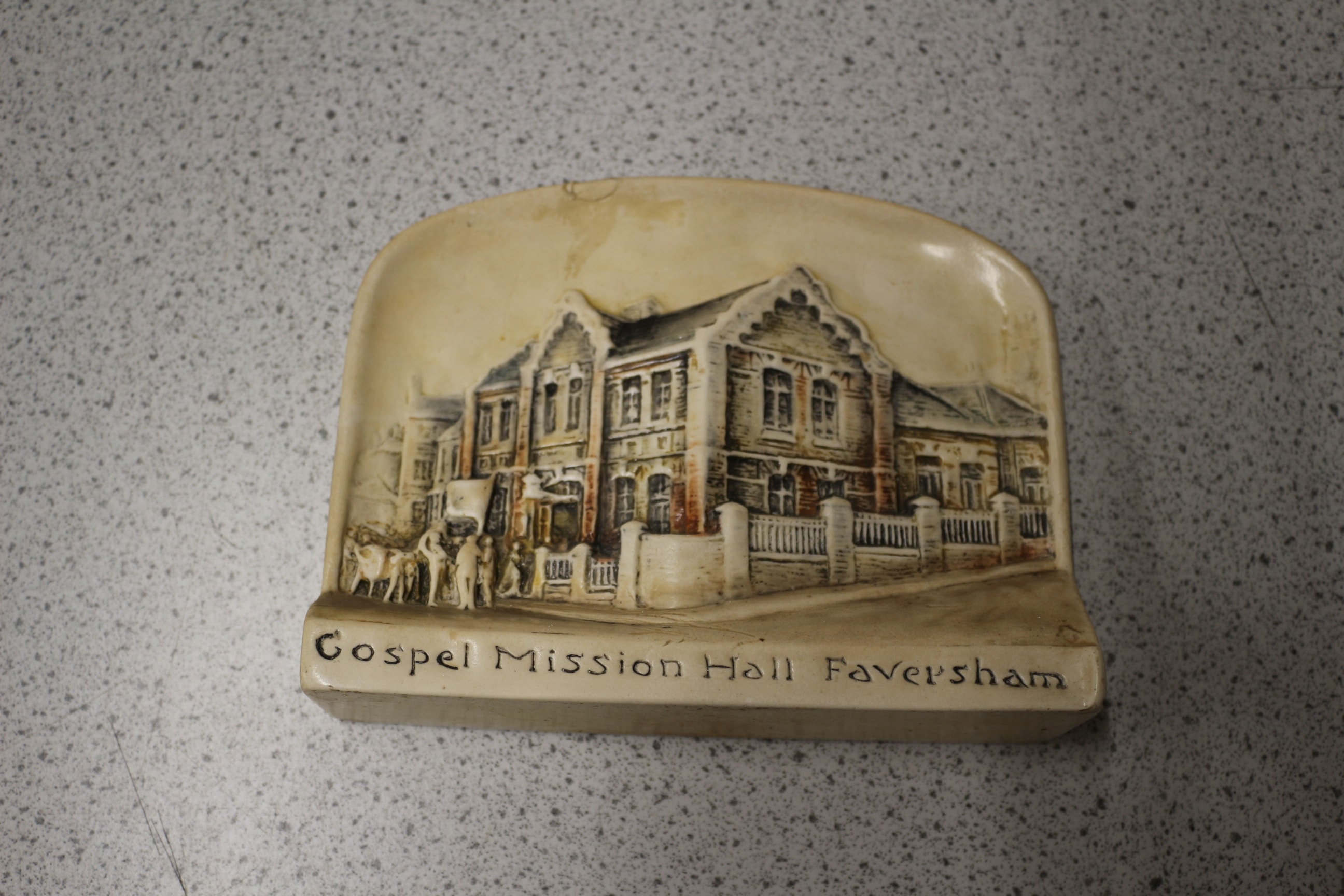 A 1950s Bossons Ivorex Architectural Relief Plaque, 'Gospel Mission Hall Faversham'